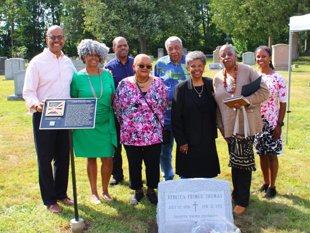 Zion Hill Cemetery holds that Northern soil — and with it, a powerful chapter of African American history in Connecticut. In the summer of 2025, the Harris family, descendants of the Primus line, worked in collaboration with the Primus Project at Trinity College to honor their ancestors, ensuring that a long-overdue headstone was finally placed at the grave of Rebecca Primus, unmarked for more than a century. The new stone also memorializes her nieces, Bessie and Edna, whose burials had likewise remained unrecognized for generations. Under the leadership of Jesse Harris, the family also restored older headstones belonging to other Primus relatives — preserving their memory and reaffirming their enduring place in Hartford’s story.